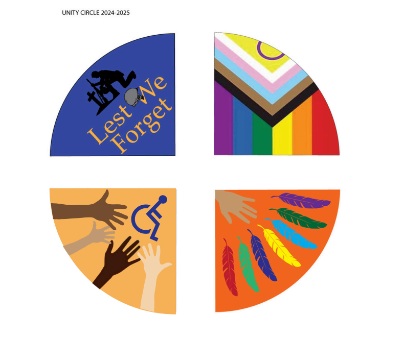 The Unity Path is a project designed to celebrate the diversity in our community with a dedicated safe space. The conceptual design honours veterans, accessibility, cultural diversity, and both the Indigenous and the LGBTQ2S+ community. The completed project will include a sign installation at Trinity United Church and an immersive experience along the pathway up to the Town Hall parking lot.